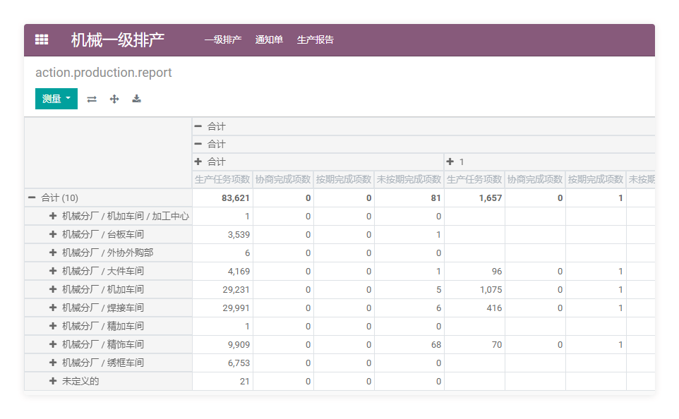 自动统计各车间生产任务、从任务数、按期完成、未按期完成、