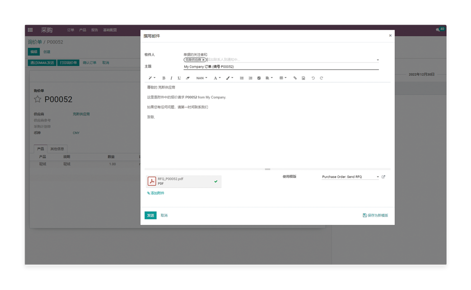 一键发送采购询价单