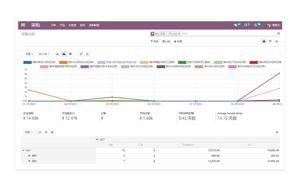 通过灵活的报告获取供应商绩效的准确统计数据(交货延迟、谈判价格折扣、采购数量等)。将采购情况与分析会计整合,分析合同的利润。