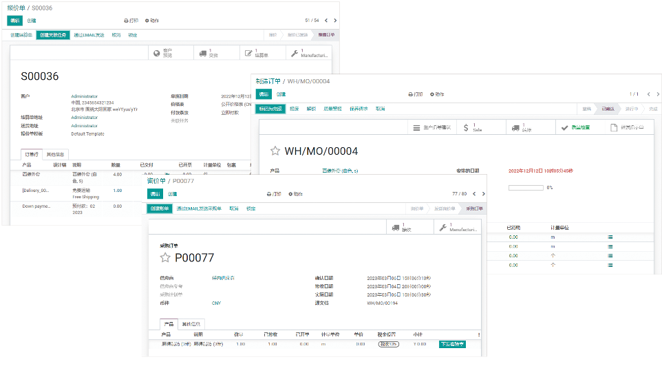 原材料、半成品、成品出入库数据,自动关联到销售、研发、采购、生产、物流等环节,各环节数据同步,减少信息差。